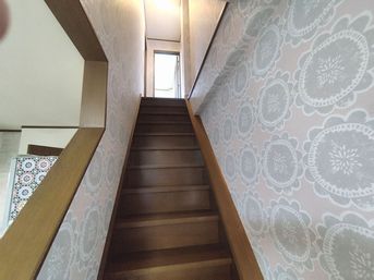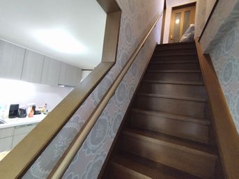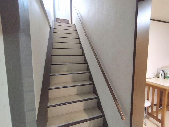 階段手摺取付工事が2ヶ所、洋室、階段室のクロス貼替工事です。