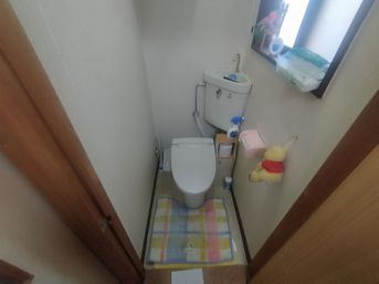 洋式便器取替え、洗面化粧台取替え、クロス、クッションフロアー工事になります。